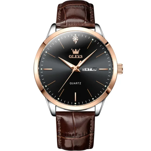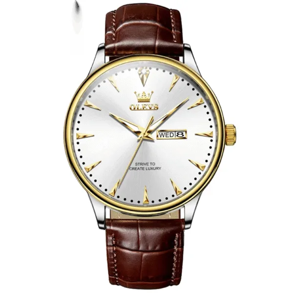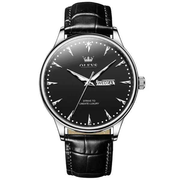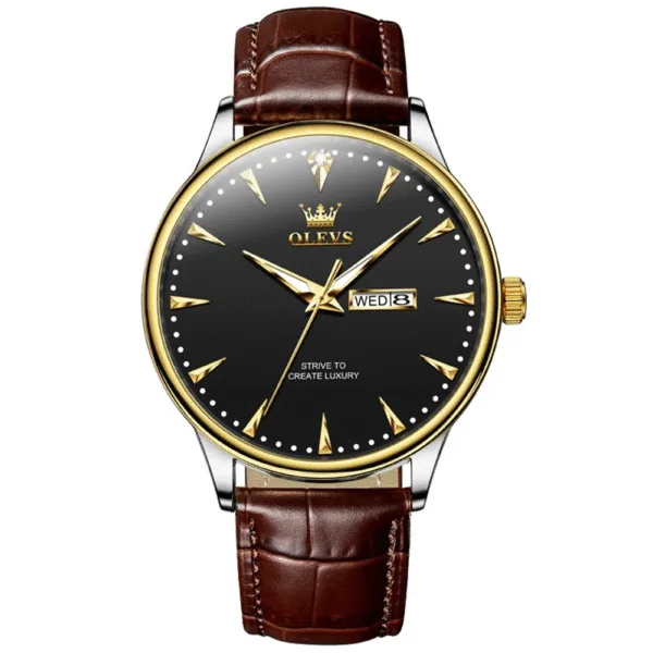 OLEVS 3632 Mens Leather Strap Quartz Watch