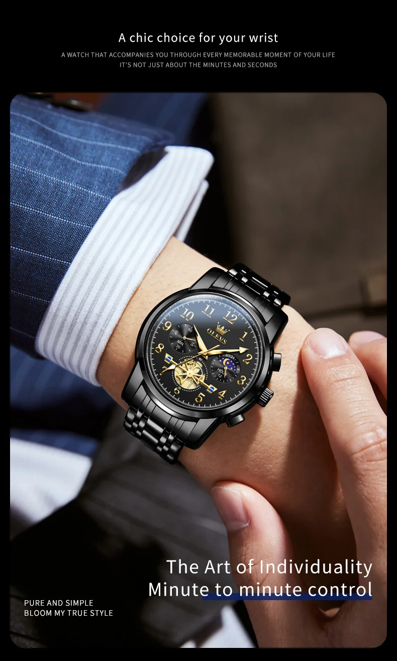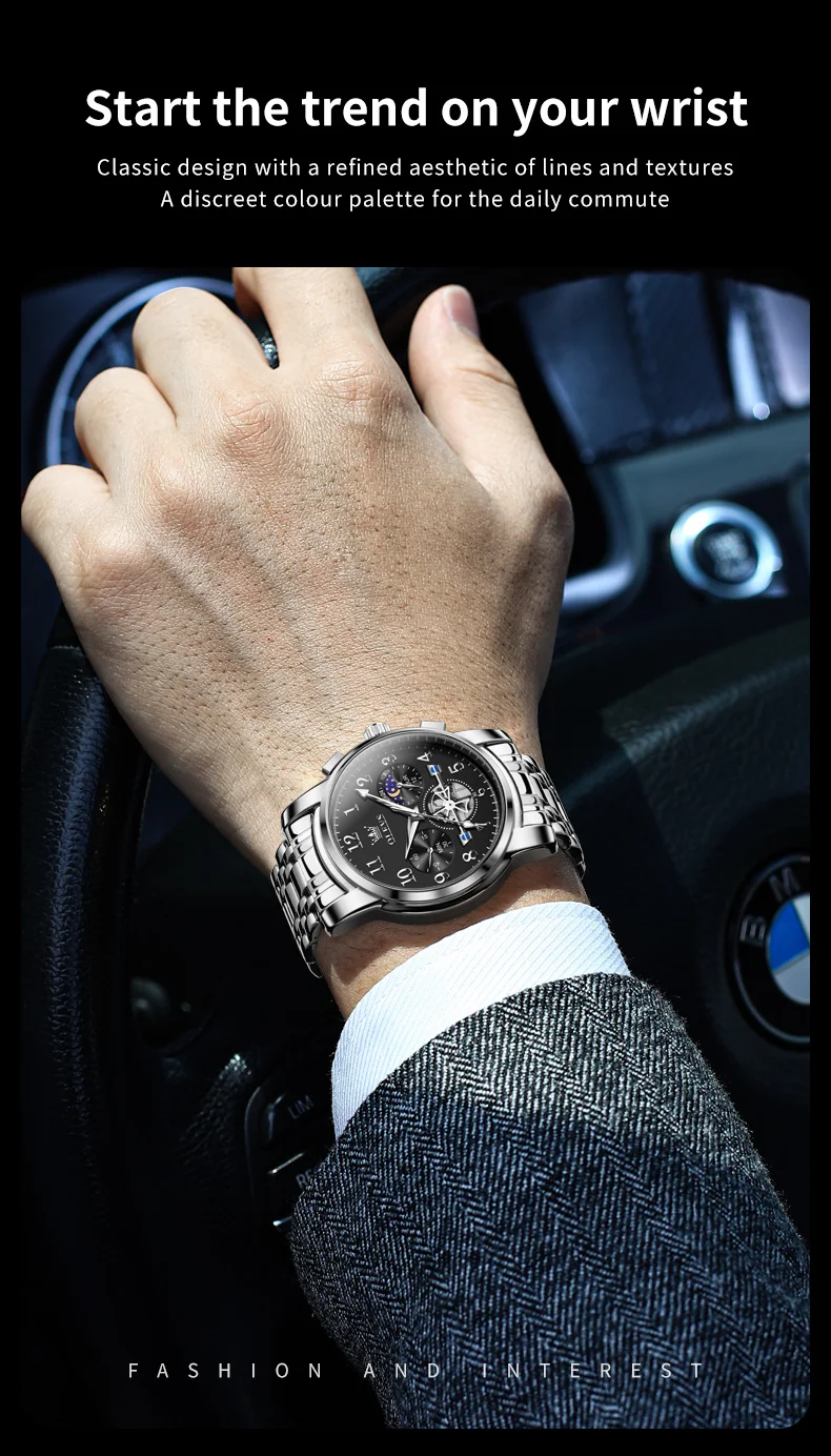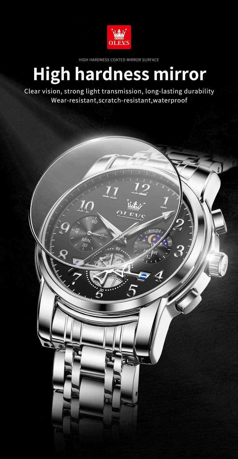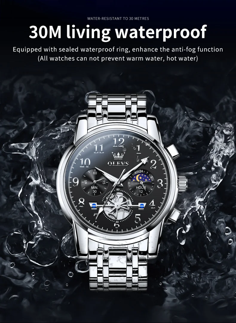 OLEVS 2900 Men’s Moon Phase Steel Watch– Luxury Quartz