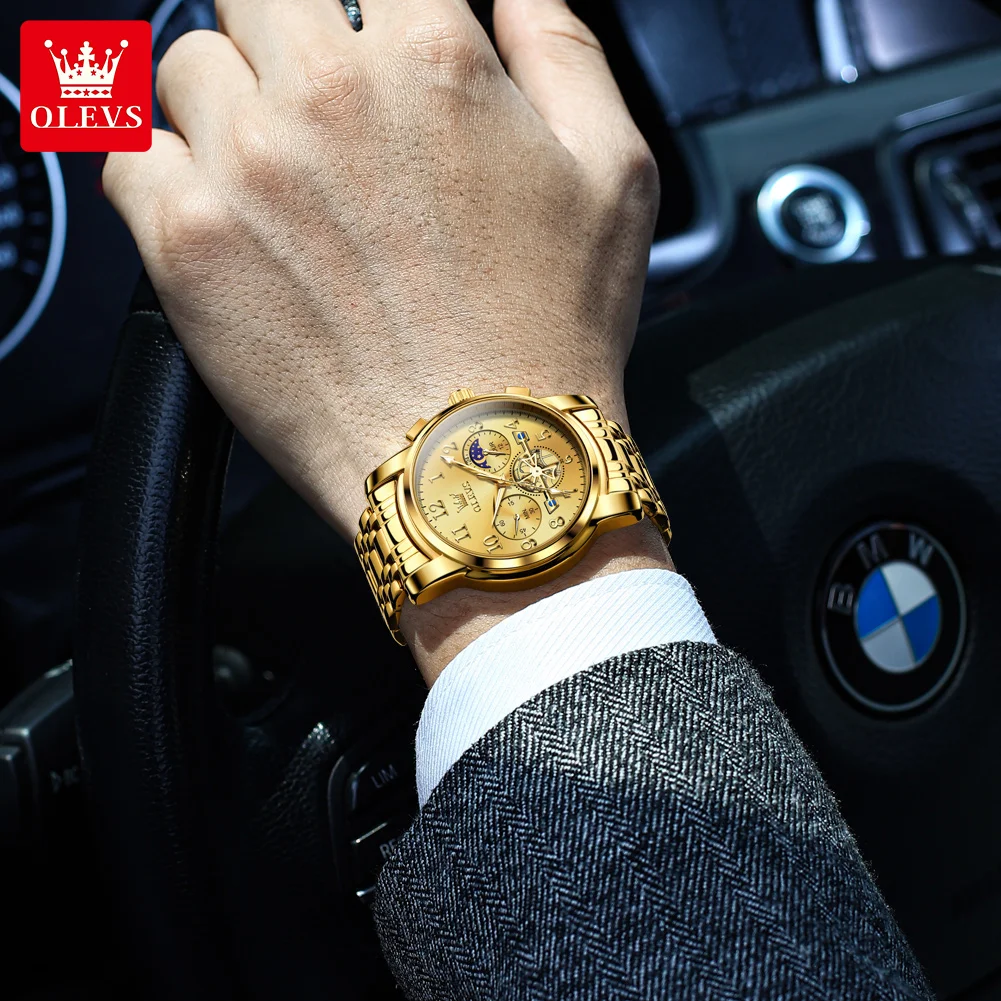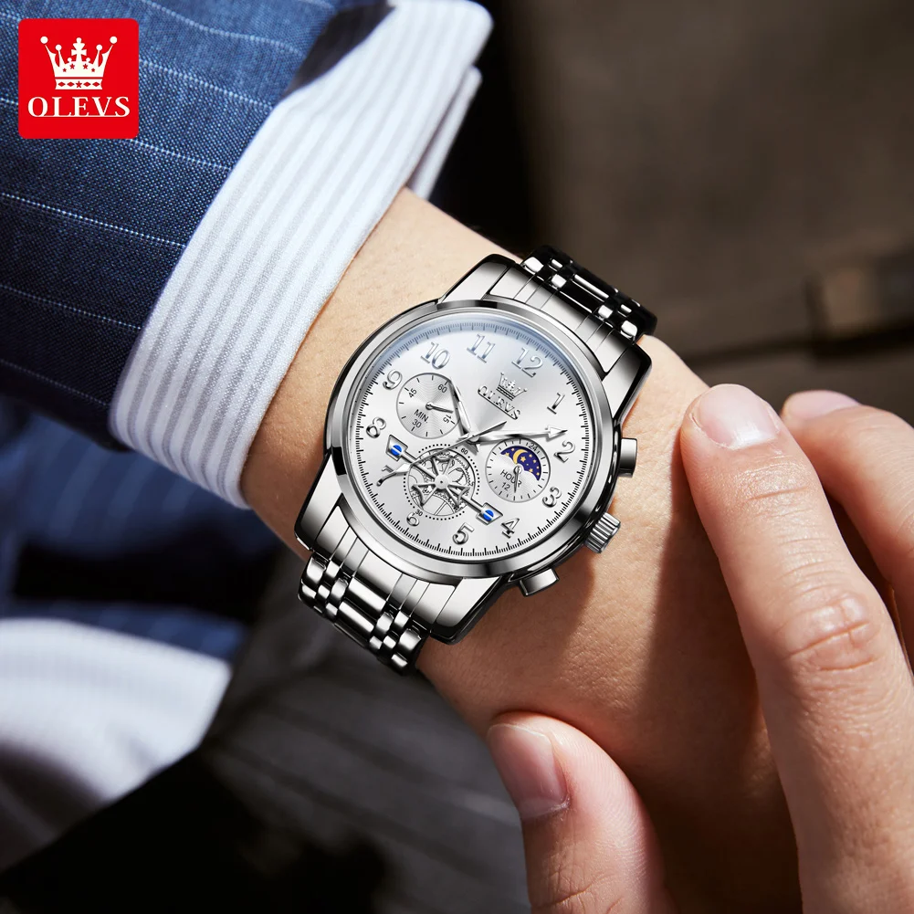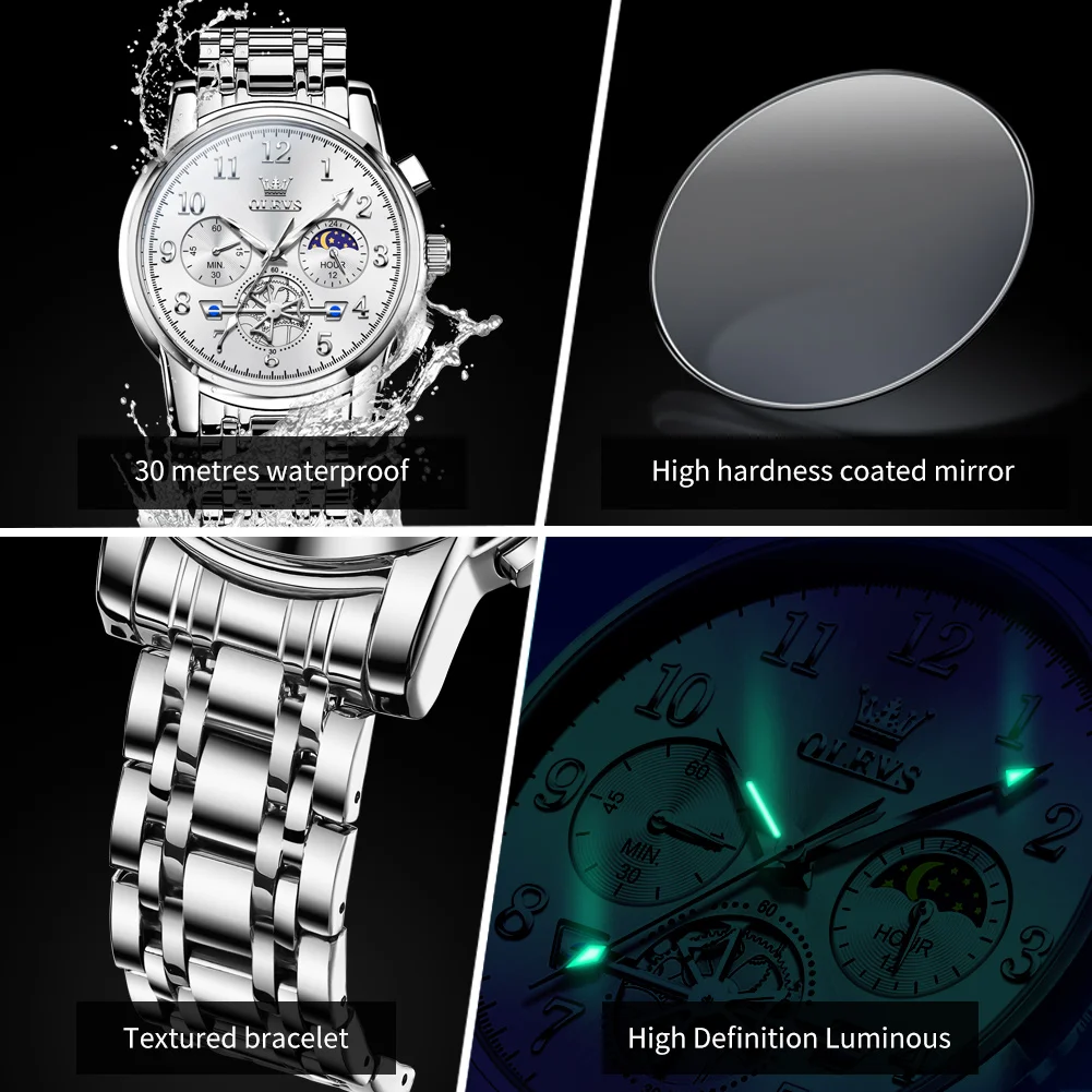 OLEVS 2900 Men’s Moon Phase Steel Watch– Luxury Quartz