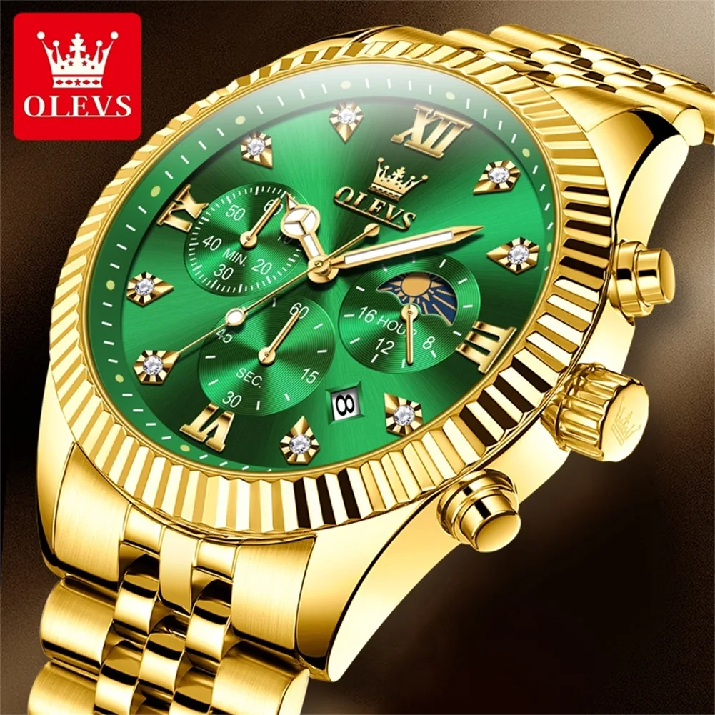 OLEVS 2932 Men’s Luxury Diamond Chronograph Stainless Steel Waterproof Watch