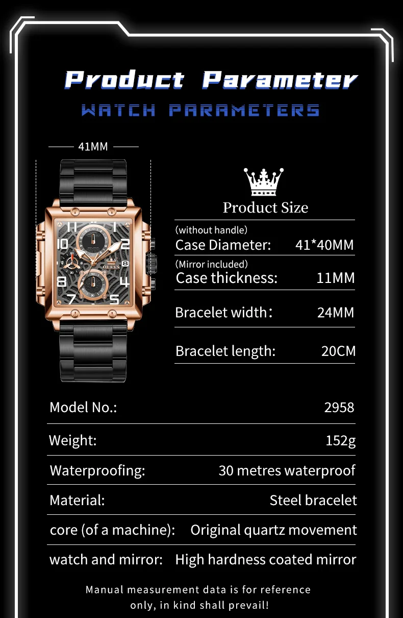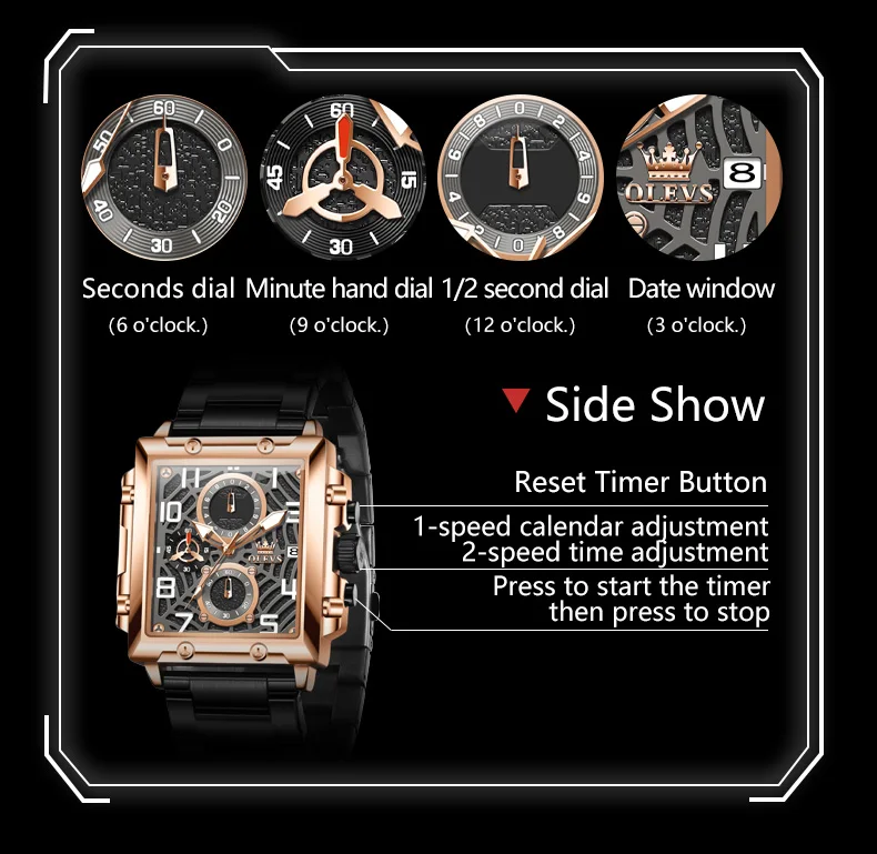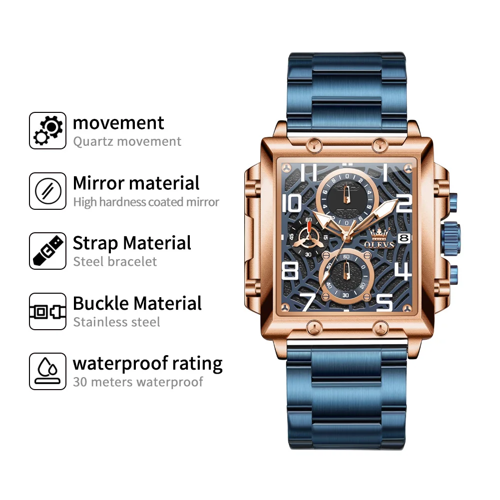 OLEVS 2958 Mens Square Chronograph Watch