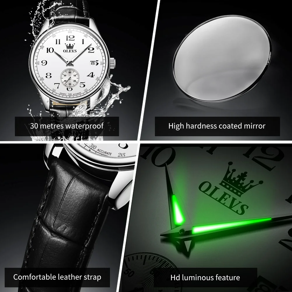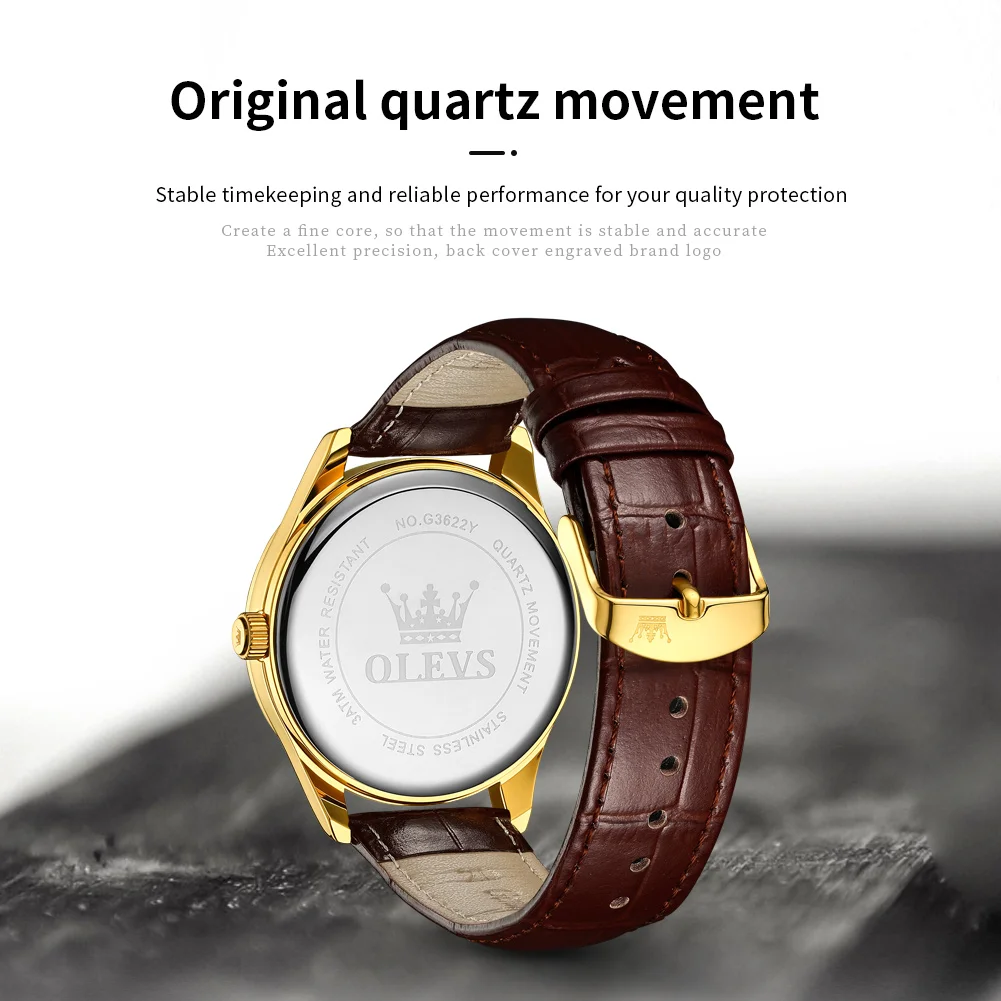 OLEVS 3622 Men’s Classic Leather Watch – Moon Phase Luxury Quartz