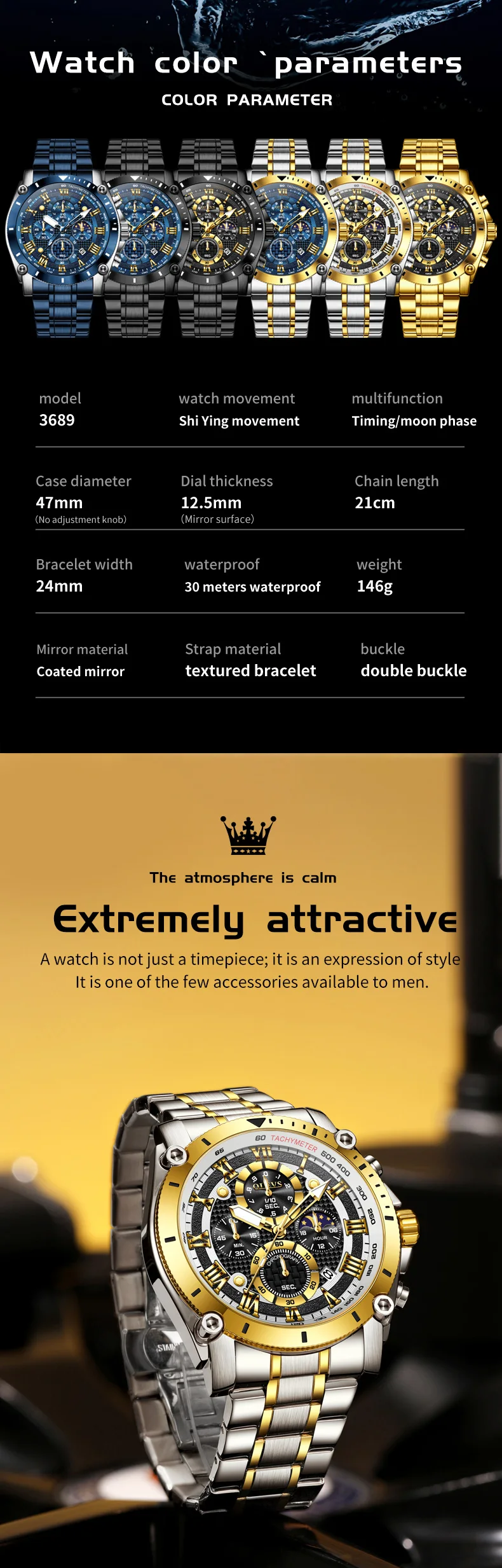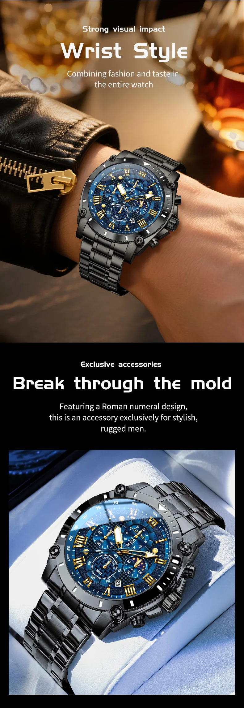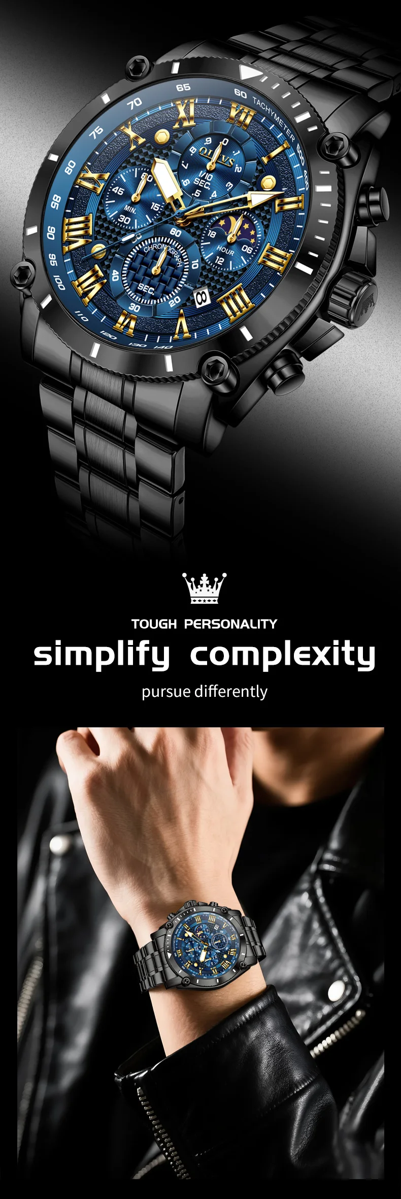 The OLEVS 3689 Real Three-Eye Men’s Watch blends business elegance with sporty performance. Featuring a functional chronograph design, durable stainless-steel strap, and waterproof alloy case, this watch delivers both precision timing and luxury appeal — perfect for everyday wear or formal occasions.
