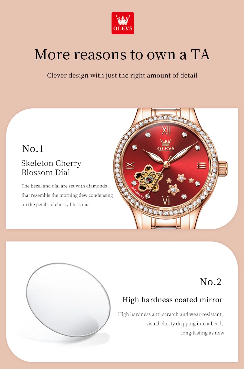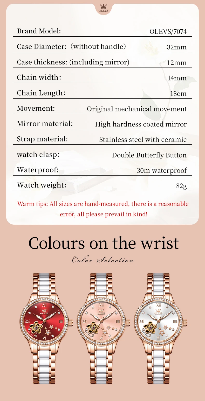 OLEVS 7074 Women’s Automatic Watch with Ceramic Steel Bracelet