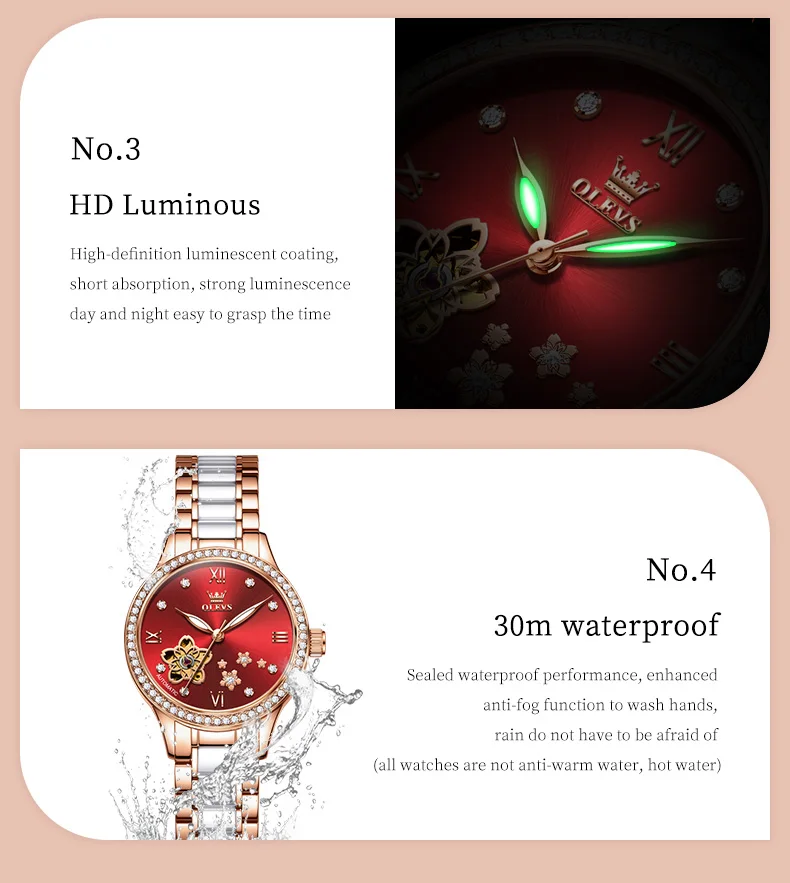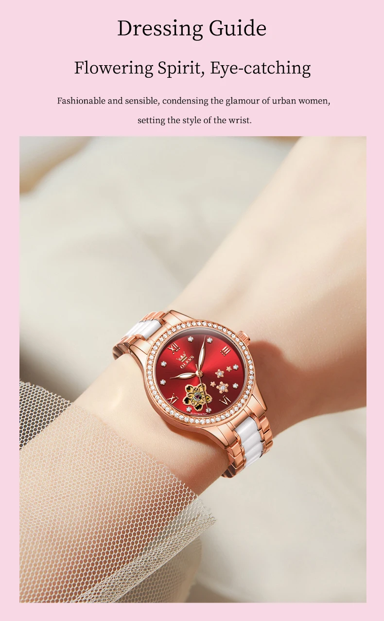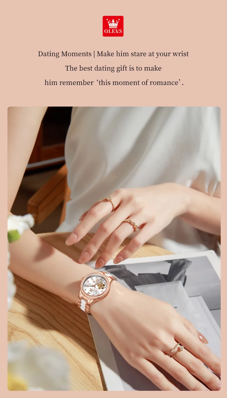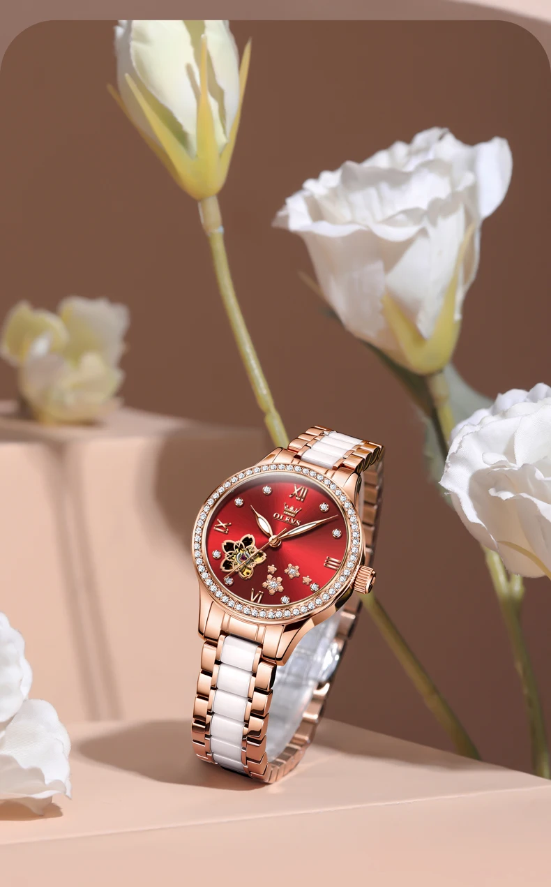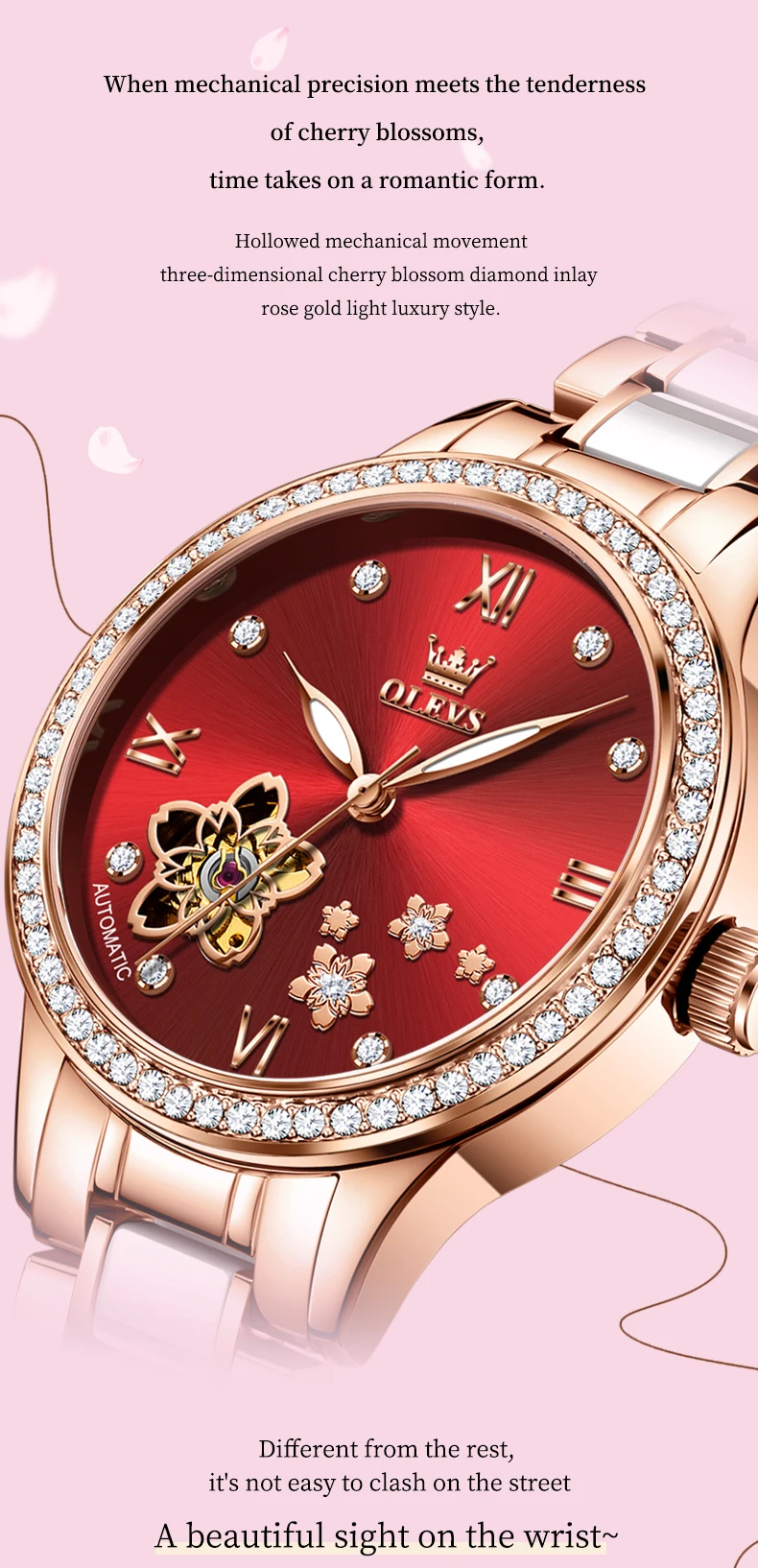 OLEVS 6610 Ceramic Rhinestone Mechanical Watch