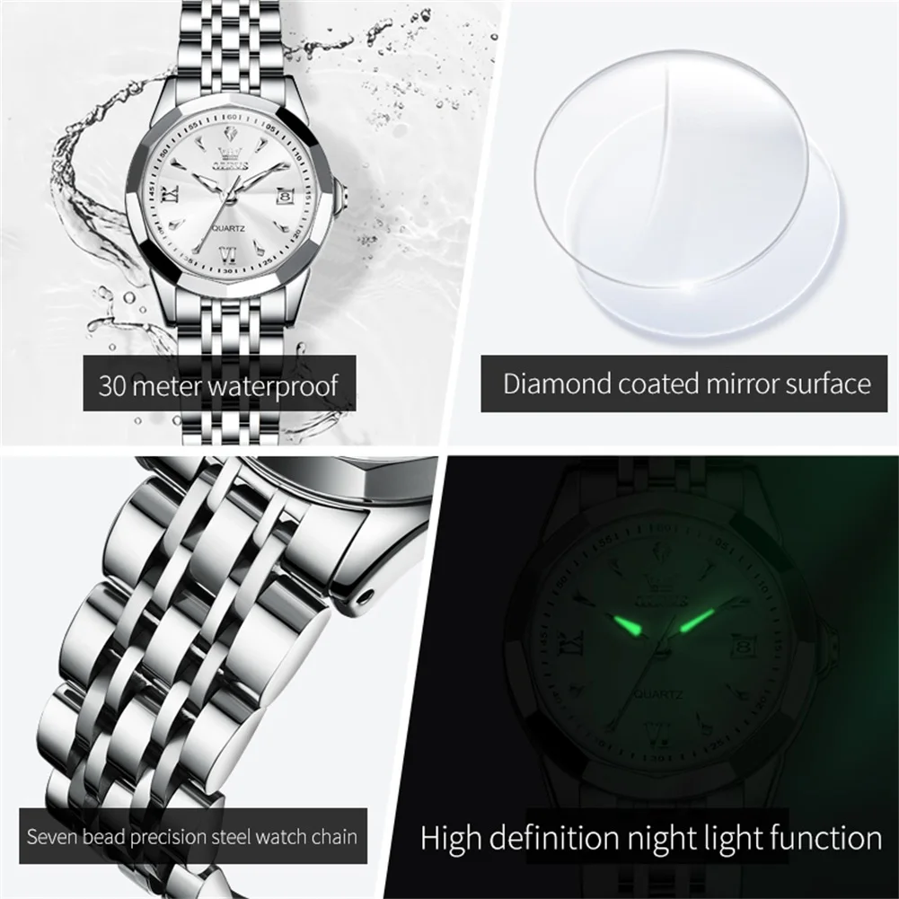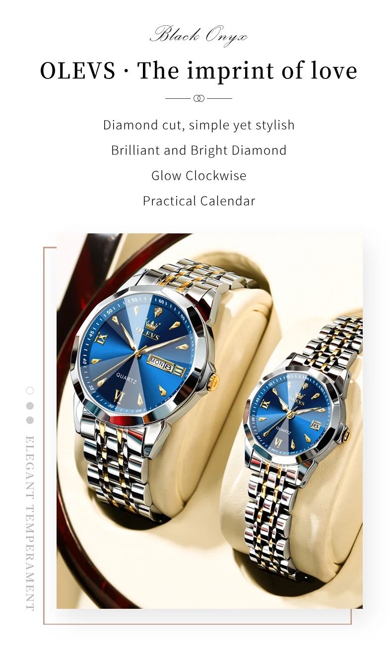 OLEVS 8697 Minimalist Diamond Couple Watches for Lovers